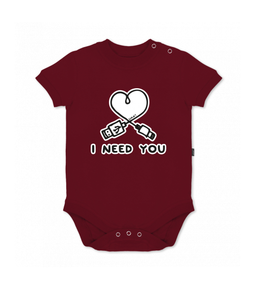 UAX baby body SHORT for kid with design 1206 I NEED YOU 2 in color DARK RED
