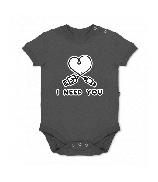 UAX baby body SHORT for kid with design 1206 I NEED YOU 2 in color GRAFIT