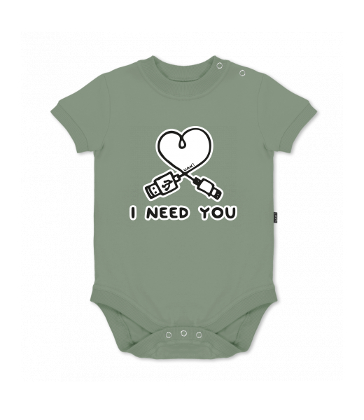UAX baby body SHORT for kid with design 1206 I NEED YOU 2 in color OLIVA