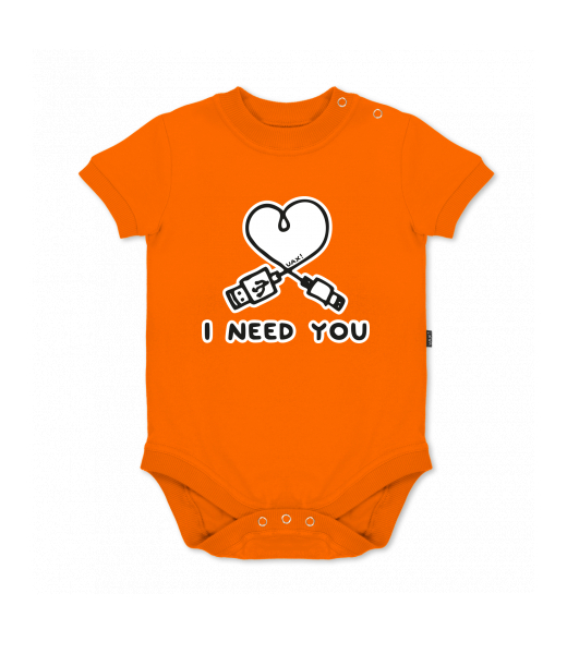 UAX baby body SHORT for kid with design 1206 I NEED YOU 2 in color SIGNAL ORANGE