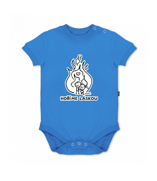 UAX baby body SHORT for kid with design 1208 HOŘÍME LÁSKOU in color CAPRI BLUE