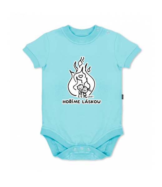 We make sustainable UAX clothing! - hand sewn in the Czech Republic uaxKids uaxAll productsBaby bodyBABY BODY SHORTdesign 1208 - HOŘÍME LÁSKOUPASTEL BLUE