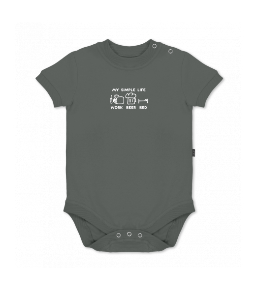 UAX baby body SHORT for kid with design 1211 MY SIMPLE LIFE WORK BEER BED in color DARK GRAY