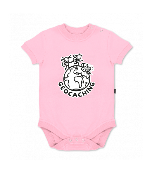 UAX baby body SHORT for kid with design 1215 GEOCACHING in color BABY PINK