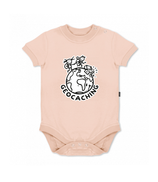 UAX baby body SHORT for kid with design 1215 GEOCACHING in color CAPPUCINO