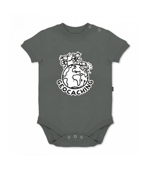 UAX baby body SHORT for kid with design 1215 GEOCACHING in color DARK GRAY