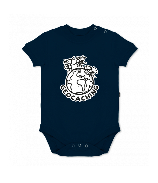 UAX baby body SHORT for kid with design 1215 GEOCACHING in color DARK NAVY