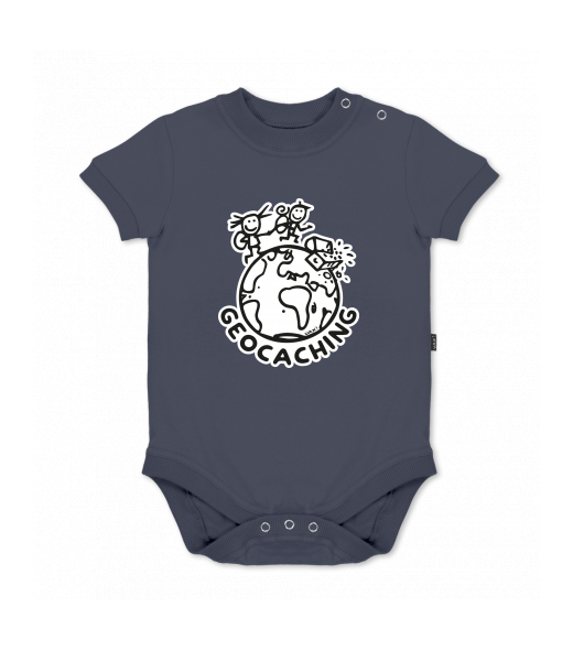 UAX baby body SHORT for kid with design 1215 GEOCACHING in color GRAY INK