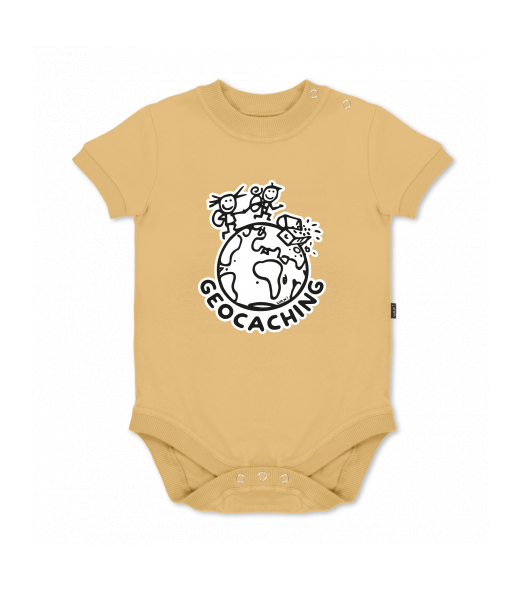 UAX baby body SHORT for kid with design 1215 GEOCACHING in color MUSTARD