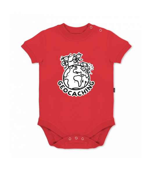 We make sustainable UAX clothing! - hand sewn in the Czech Republic uaxKids uaxAll productsBaby bodyBABY BODY SHORTdesign 1215 - GEOCACHINGRED
