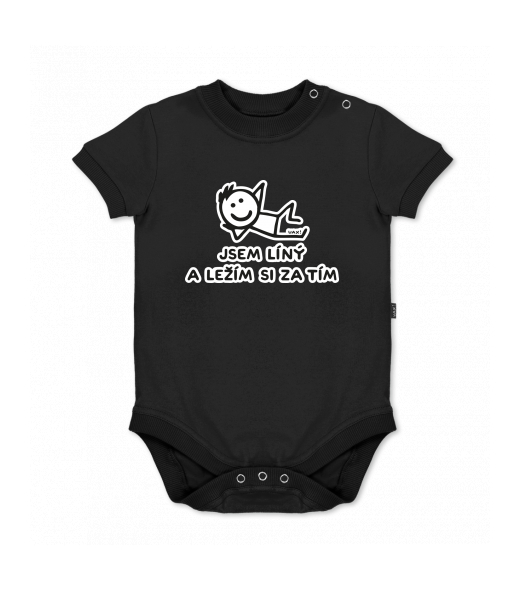 We make sustainable UAX clothing! - hand sewn in the Czech Republic uaxKids uaxAll productsBaby bodyBABY BODY SHORTdesign 1217 - JSEM LÍNÝ A LEŽÍM SI ZA TÍMBLACK