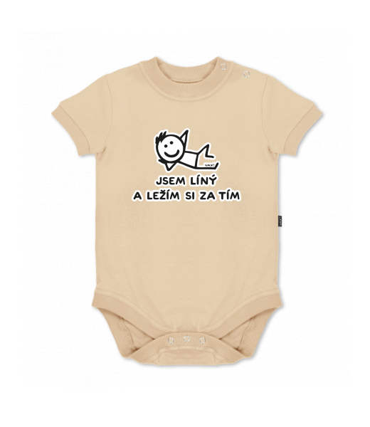 We make sustainable UAX clothing! - hand sewn in the Czech Republic uaxKids uaxAll productsBaby bodyBABY BODY SHORTdesign 1217 - JSEM LÍNÝ A LEŽÍM SI ZA TÍMCARAMEL