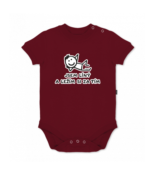 We make sustainable UAX clothing! - hand sewn in the Czech Republic uaxKids uaxAll productsBaby bodyBABY BODY SHORTdesign 1217 - JSEM LÍNÝ A LEŽÍM SI ZA TÍMDARK RED