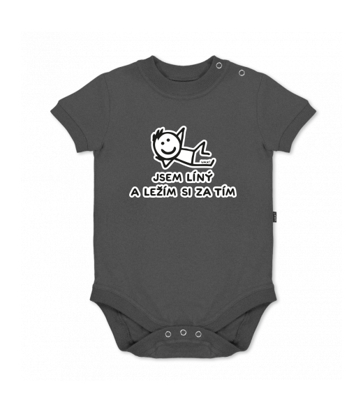 UAX baby body SHORT for kid with design 1217 JSEM LÍNÝ A LEŽÍM SI ZA TÍM in color GRAFIT