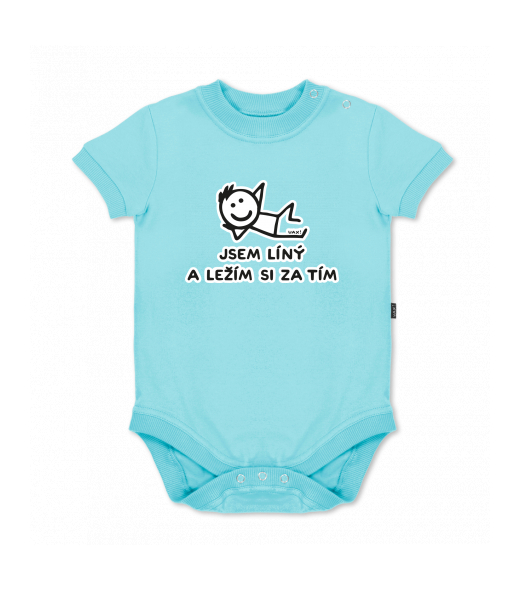 UAX baby body SHORT for kid with design 1217 JSEM LÍNÝ A LEŽÍM SI ZA TÍM in color PASTEL BLUE