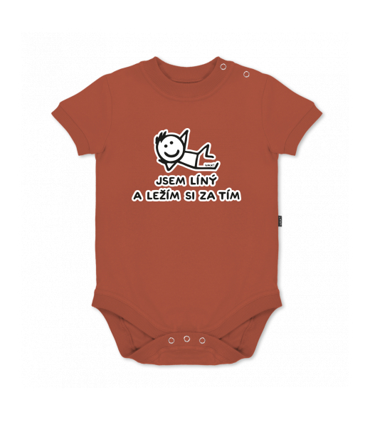 UAX baby body SHORT for kid with design 1217 JSEM LÍNÝ A LEŽÍM SI ZA TÍM in color TERRA