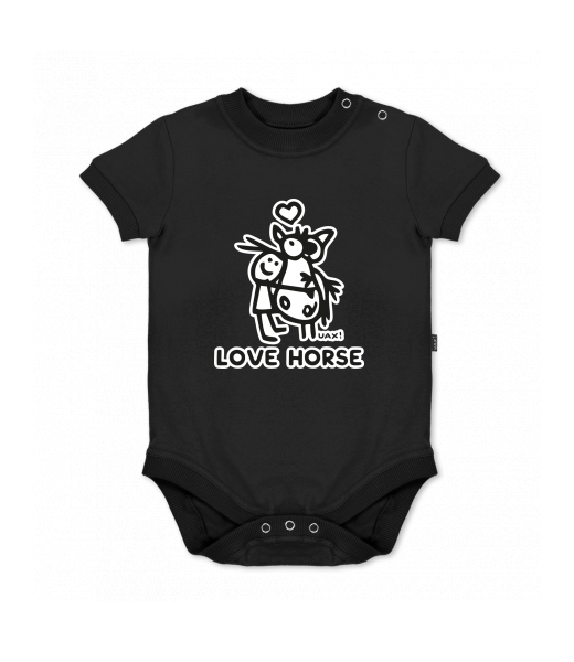 UAX baby body SHORT for kid with design 1219 LOVE HORSE in color BLACK