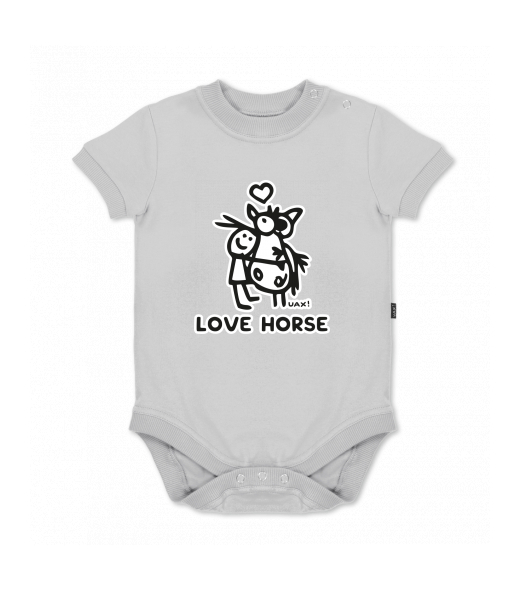 UAX baby body SHORT for kid with design 1219 LOVE HORSE in color CEMENT