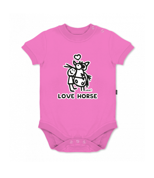 We make sustainable UAX clothing! - hand sewn in the Czech Republic uaxKids uaxAll productsBaby bodyBABY BODY SHORTdesign 1219 - LOVE HORSECLASSIC PINK