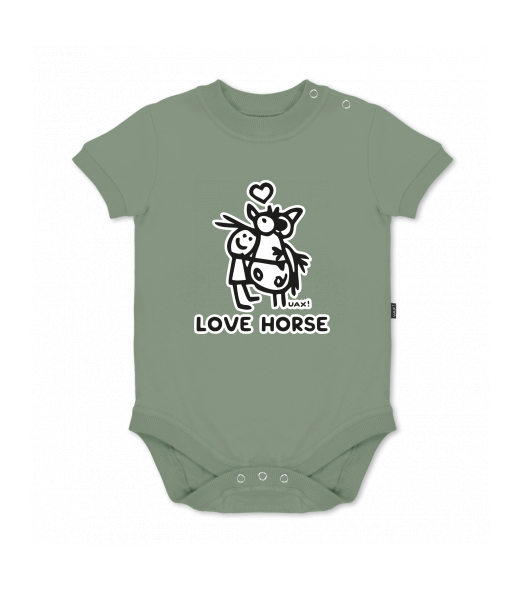UAX baby body SHORT for kid with design 1219 LOVE HORSE in color OLIVA