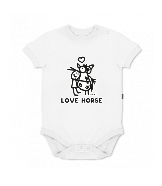 We make sustainable UAX clothing! - hand sewn in the Czech Republic uaxKids uaxAll productsBaby bodyBABY BODY SHORTdesign 1219 - LOVE HORSEWHITE