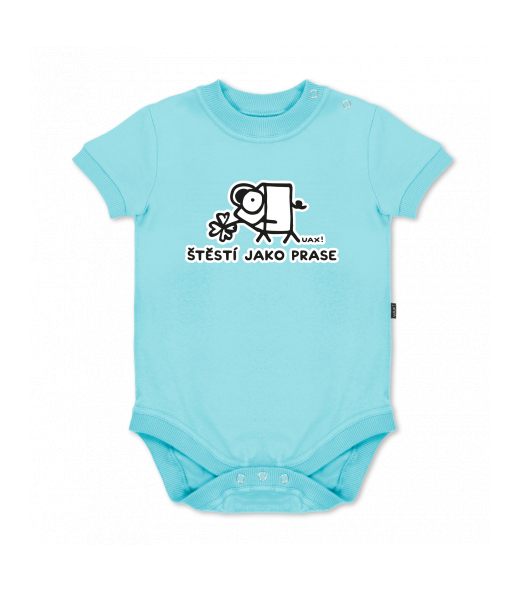 We make sustainable UAX clothing! - hand sewn in the Czech Republic uaxKids uaxAll productsBaby bodyBABY BODY SHORTdesign 1220 - ŠTĚSTÍ JAKO PRASEPASTEL BLUE