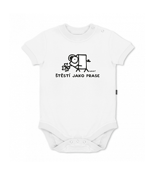 We make sustainable UAX clothing! - hand sewn in the Czech Republic uaxKids uaxAll productsBaby bodyBABY BODY SHORTdesign 1220 - ŠTĚSTÍ JAKO PRASEWHITE