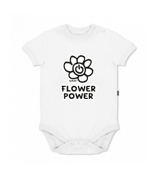 UAX baby body SHORT for kid with design 1227 FLOWER POWER in color WHITE