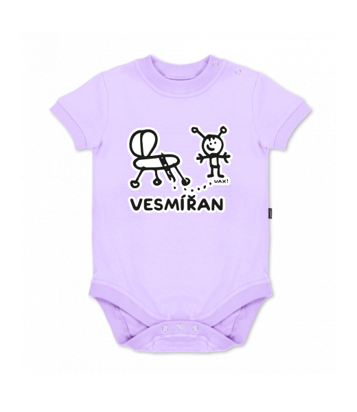 UAX baby body SHORT for kid with design 1232 VESMÍŘAN in color LAVENDER