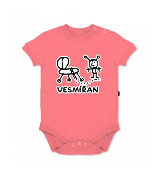 UAX baby body SHORT for kid with design 1232 VESMÍŘAN in color LOSOSOVA