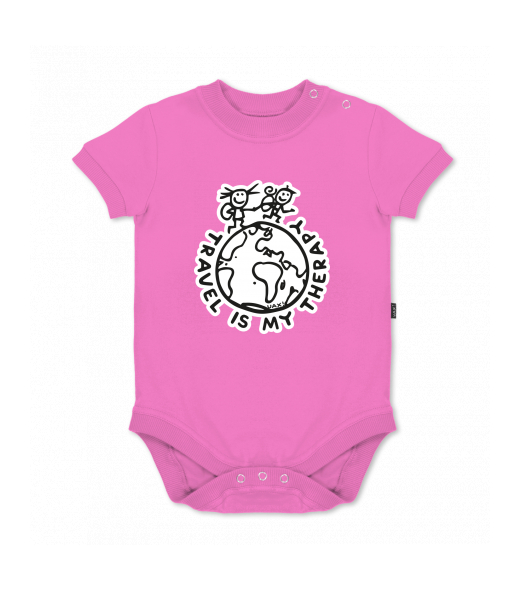 UAX baby body SHORT for kid with design 1240 TRAVEL IS MY THERAPY in color CLASSIC PINK