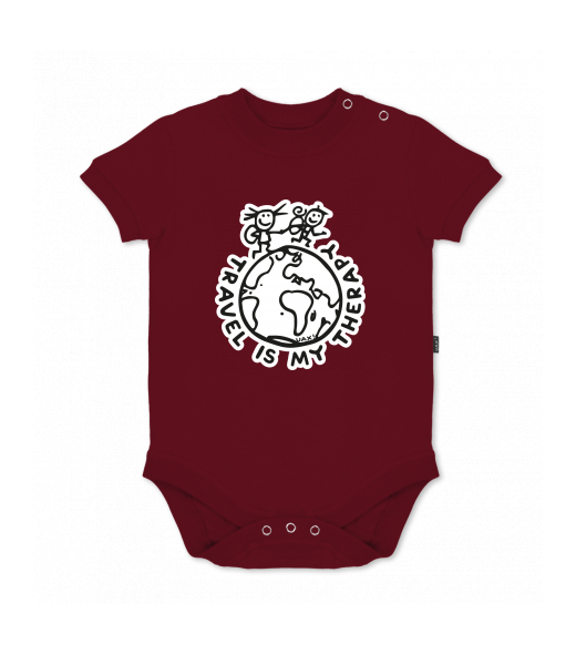 UAX baby body SHORT for kid with design 1240 TRAVEL IS MY THERAPY in color DARK RED