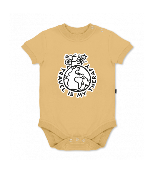 UAX baby body SHORT for kid with design 1240 TRAVEL IS MY THERAPY in color MUSTARD