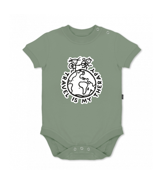 UAX baby body SHORT for kid with design 1240 TRAVEL IS MY THERAPY in color OLIVA