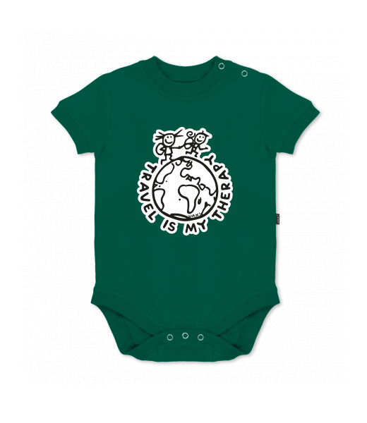UAX baby body SHORT for kid with design 1240 TRAVEL IS MY THERAPY in color UNIVERSITY GREEN