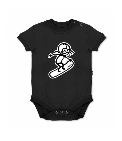 UAX baby body SHORT for kid with design 1243 SNOWBOARD in color BLACK