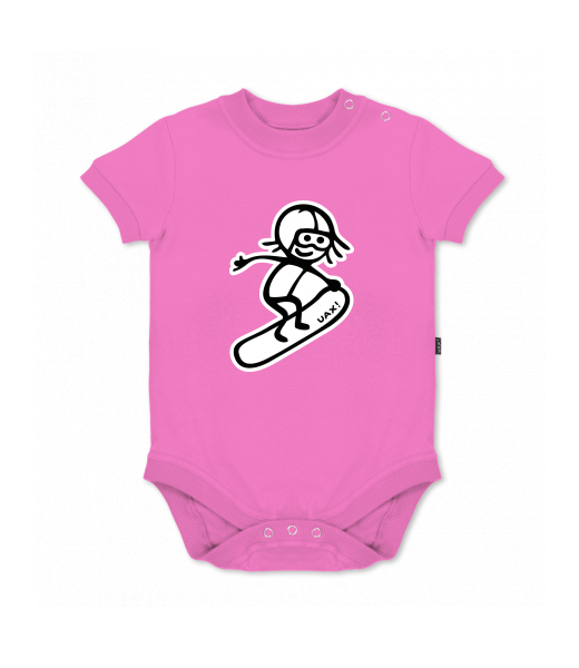 UAX baby body SHORT for kid with design 1243 SNOWBOARD in color CLASSIC PINK