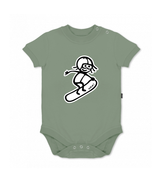 UAX baby body SHORT for kid with design 1243 SNOWBOARD in color OLIVA