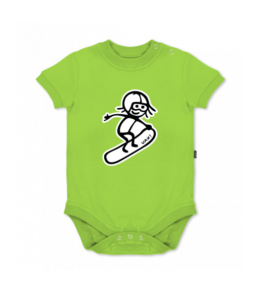UAX baby body SHORT for kid with design 1243 SNOWBOARD in color PARROT GREEN