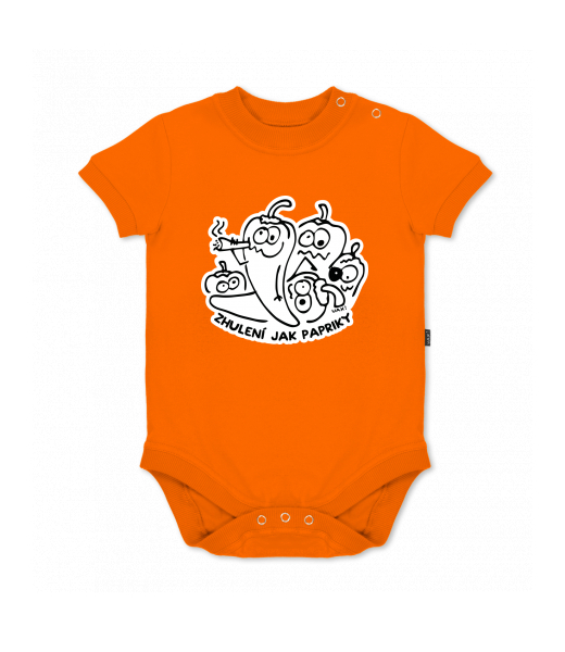 We make sustainable UAX clothing! - hand sewn in the Czech Republic uaxKids uaxAll productsBaby bodyBABY BODY SHORTdesign 1245 - ZHULENÍ JAK PAPRIKYSIGNAL ORANGE