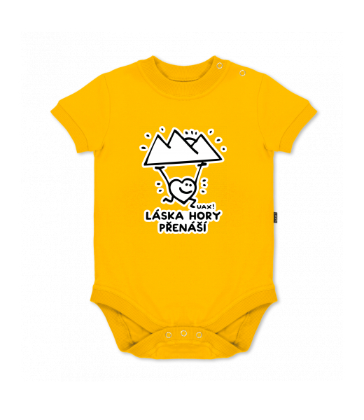 We make sustainable UAX clothing! - hand sewn in the Czech Republic uaxKids uaxAll productsBaby bodyBABY BODY SHORTdesign 1264 - LÁSKA HORY PŘENÁŠÍGOLDEN CREAM