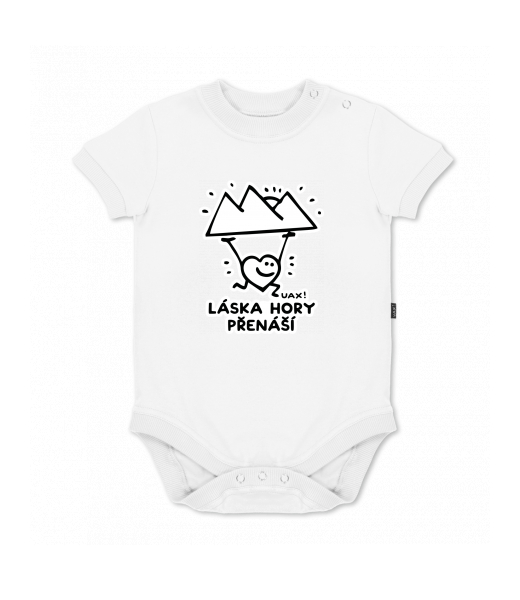We make sustainable UAX clothing! - hand sewn in the Czech Republic uaxKids uaxAll productsBaby bodyBABY BODY SHORTdesign 1264 - LÁSKA HORY PŘENÁŠÍWHITE