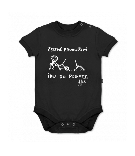 UAX baby body SHORT for kid with design 1303 ČESTNÉ PROHLÁŠENÍ IDU DO ROBOTY in color BLACK