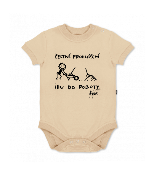 UAX baby body SHORT for kid with design 1303 ČESTNÉ PROHLÁŠENÍ IDU DO ROBOTY in color CARAMEL