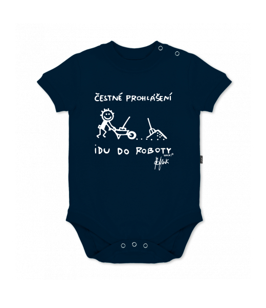 UAX baby body SHORT for kid with design 1303 ČESTNÉ PROHLÁŠENÍ IDU DO ROBOTY in color DARK NAVY