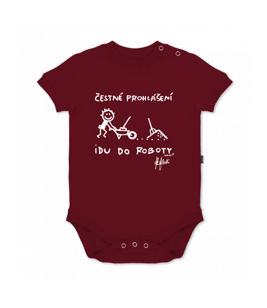 UAX baby body SHORT for kid with design 1303 ČESTNÉ PROHLÁŠENÍ IDU DO ROBOTY in color DARK RED
