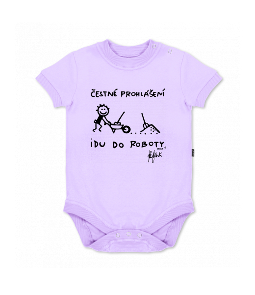 UAX baby body SHORT for kid with design 1303 ČESTNÉ PROHLÁŠENÍ IDU DO ROBOTY in color LAVENDER