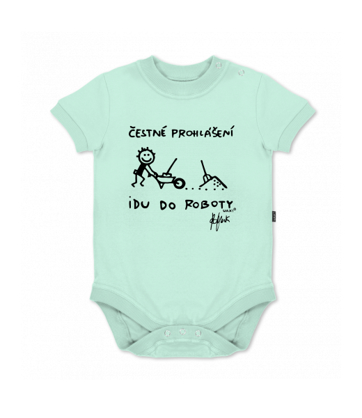 UAX baby body SHORT for kid with design 1303 ČESTNÉ PROHLÁŠENÍ IDU DO ROBOTY in color MINT