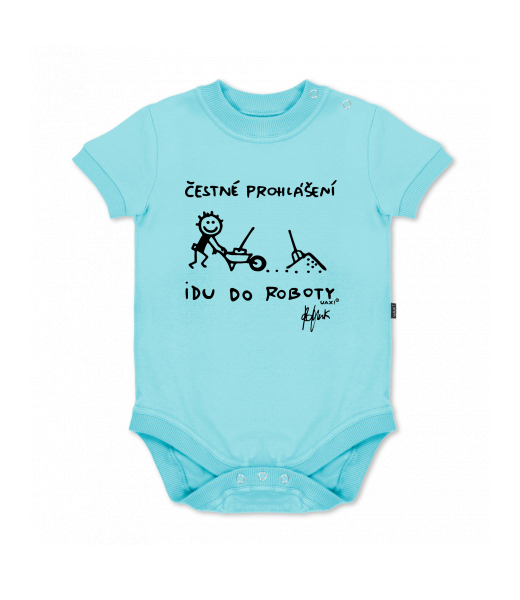 UAX baby body SHORT for kid with design 1303 ČESTNÉ PROHLÁŠENÍ IDU DO ROBOTY in color PASTEL BLUE