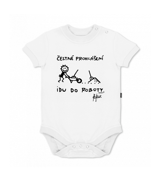 UAX baby body SHORT for kid with design 1303 ČESTNÉ PROHLÁŠENÍ IDU DO ROBOTY in color WHITE